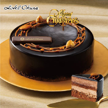 カカオ分の高いチョコレートを使用したショコラムース、ヘーゼルナッツショコラシャンティ、キャラメルソースを重ねた贅沢なショコラケーキです。