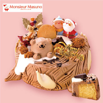 クランブル、生チョコ、チョコチップで様々な食感をプラス。白いマカロンは雪玉をイメージし見ていて楽しいケーキです。